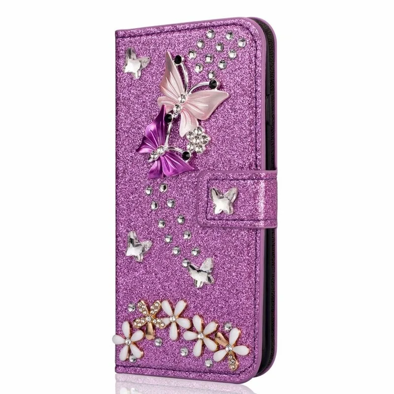 Блестящий кожаный флип-чехол с 3d-изображением бабочки, алмаза, цветов, кошелька, сумки для Samsung A31, A21, A41, A21S, A11, A01, A20S, A71, A51, A10S