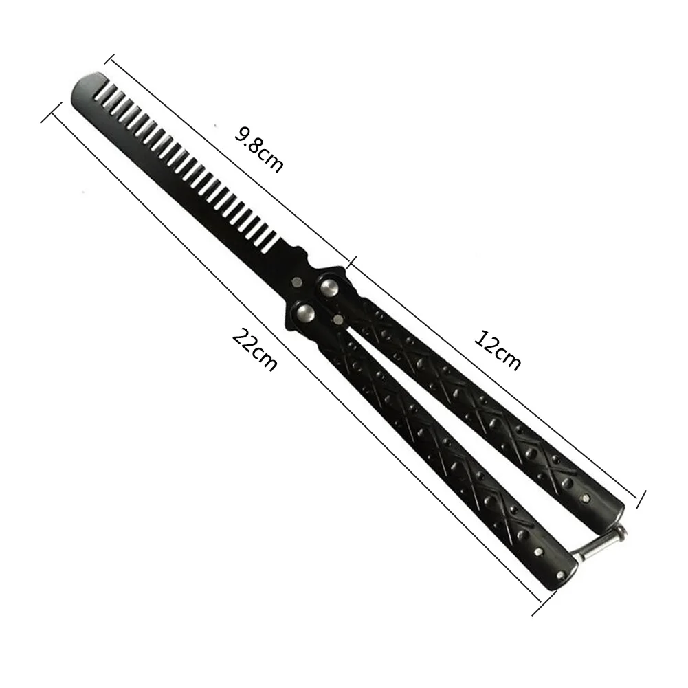 Туристический металлический складной тренажер Balisong расческа Бабочка нож безопасный тренажер аксессуары для путешествийХарактеристика:Расческа из нержавеющей стали с бабочкой. Если вы поклонник ножей-бабочек, это идеальный выбор. Вы можете безопасно тренироваться.Спецификация:Цвет: черныйОбщая длина: 22 смДлина лезвия: 9,8 см/3.86inТолщина лезвия: 0,15 см/0.06inДлина ручки: 12 смШирина лезвия: 1,8 см/0.71inМатериал лезвия: 3Cr13MovМатериал ручки: металлТвердость: 56 HRCВес: 120 гОтделка поверхности: окисленный черный и шлифовальныйПримечание:Возможны незначительные отклонения в размере из-за ручного измерения, различных методов измерения и инструментов.Изображение может не отражать фактический цвет изделия из-за различного фотографирования светильник, угол и дисплей монитора.