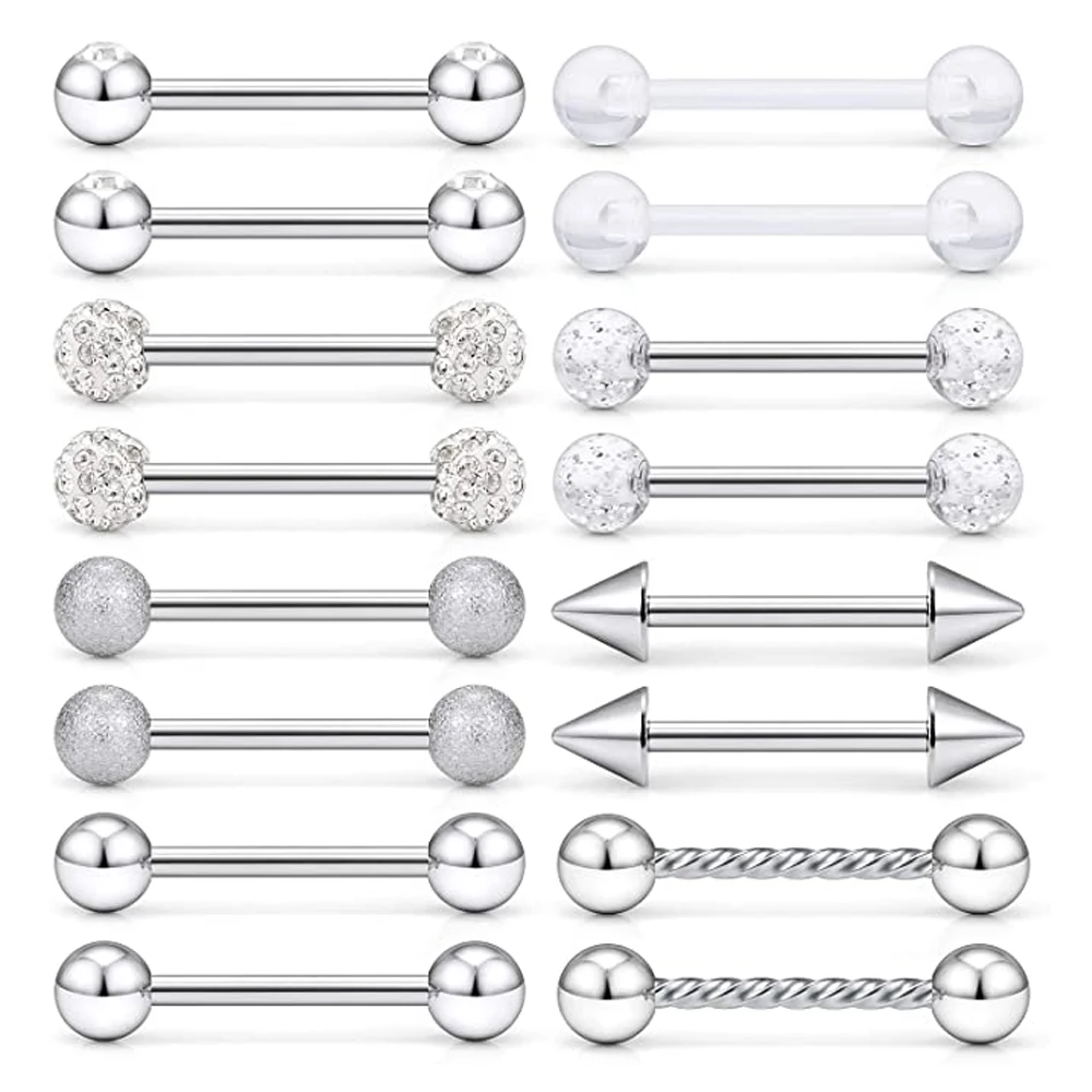 14 Калибр 316L хирургическая стальная штанга, смешанный стиль s (каждый стиль одна пара), многофункциональный пирсинг для сосков, языка, уха хряща и так далее. Разумная цена на ювелирные изделия для тела, заслуживает покупки.