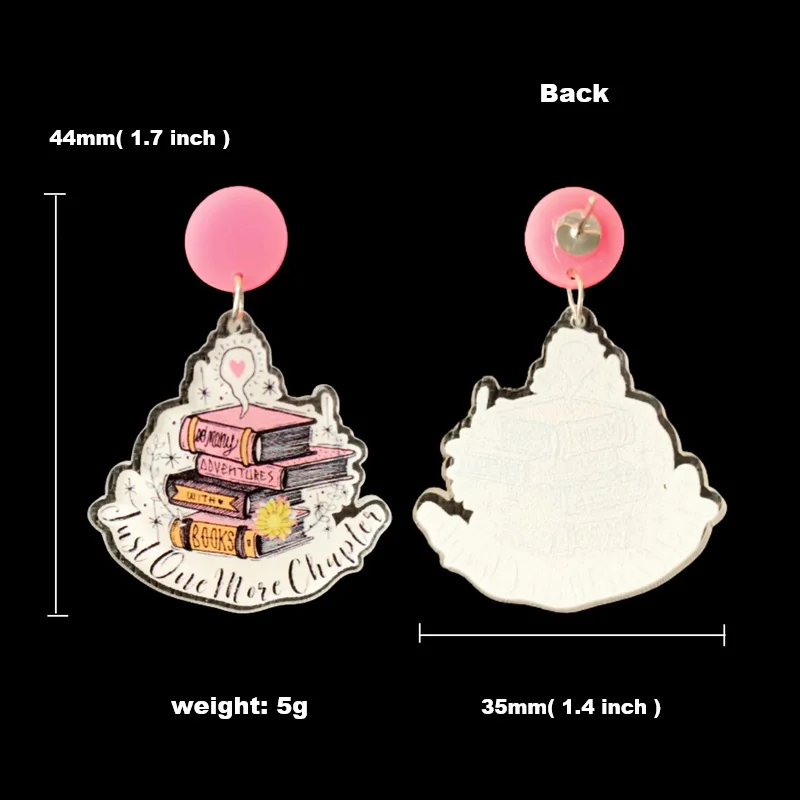 Еще одна пара серьги с изображением книгиМатериал: акрилРазмер: 1,7*1,4 дюймовPS: Мы можем настроить любой дизайн и цвет (для настройки, пожалуйста, свяжитесь с нашей службой поддержки клиентов)