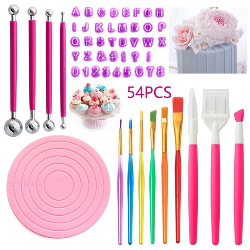 E8BD 54 шт. набор инструментов для украшения тортов номер английский символ формы красящие кисти