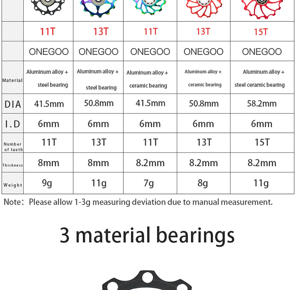 Велосипедные диски ONEGOO 11T 13T 15T, задний переключатель из алюминиевого сплава, керамический подшипник, НАПРАВЛЯЮЩАЯ, ролик для горного и дорожного велосипеда