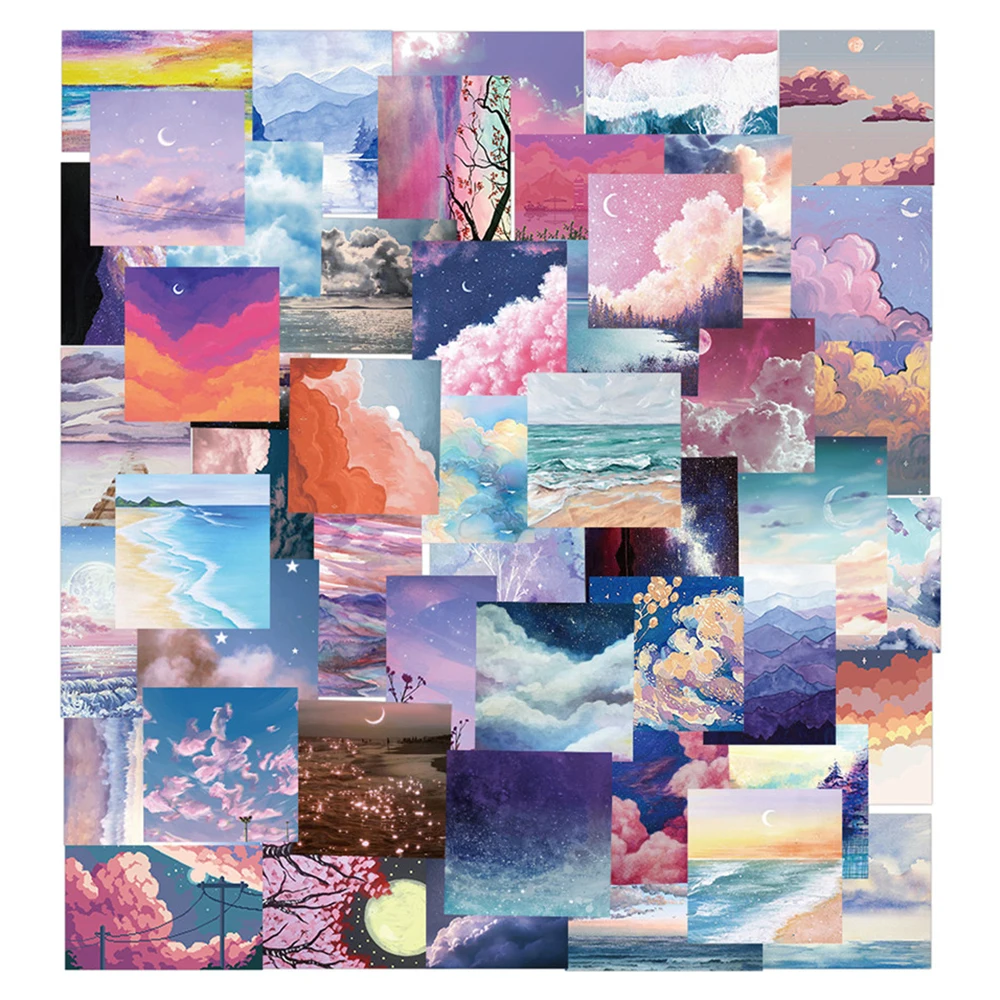 50 шт. Луна голубое небо Стикеры s для ноутбука канцелярские шлем записные книжки Скрапбукинг Материал розовый Стикеры эстетическое рукоделия