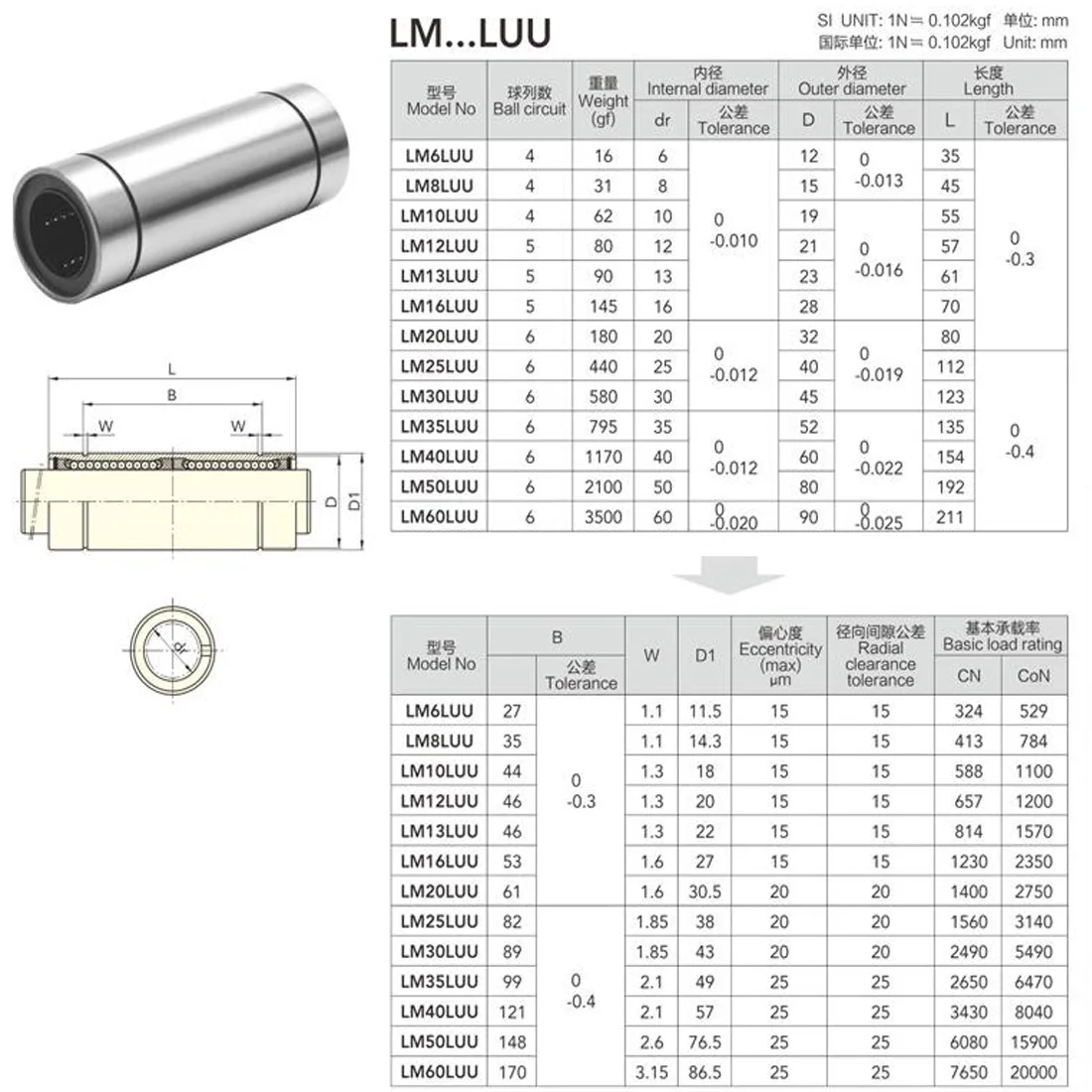 Линейный подшипник LM5LUU LM6LUU LM8LUU LM10LUU LM12LUU LM13LUU LM16LUU LM20LUU, 1 шт., линейная втулка линейный подшипник для ЧПУ