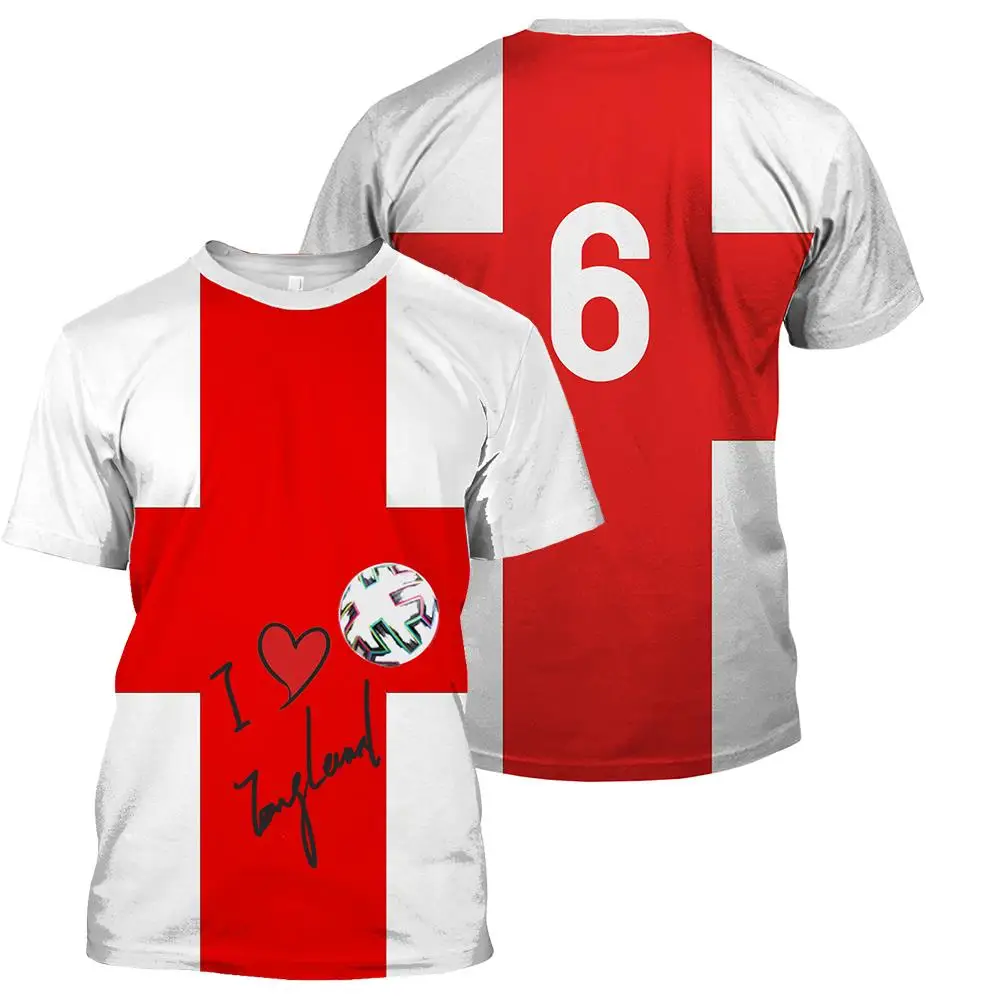 Англия Национальный день с короткими рукавами и принтом футбольного болельщика футболка большие футболки Удобные быстрое высыхание Футболка Модный Топ футболки для девочек