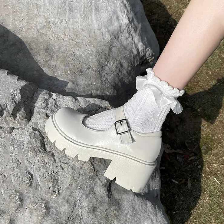 Белые женские ботинки в японском стиле Лолита, Женская Винтажная обувь на мягком высоком каблуке и платформе, студенческие ботинки Мэри Джейн для колледжа
