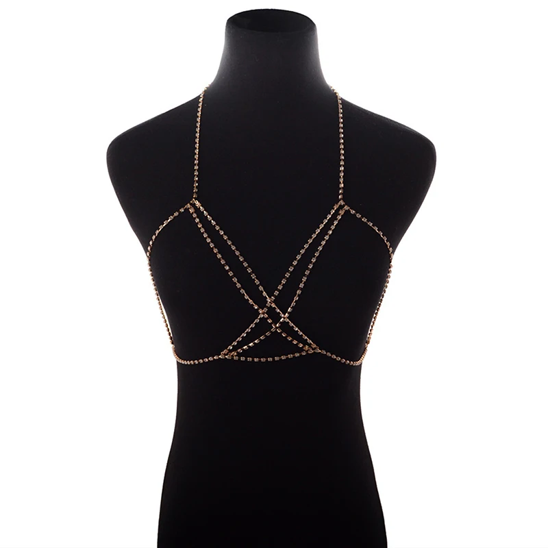 Женский сексуальный бюстгальтер, цепочка, очаровательное бикини, пляжные модные украшения, Блестящие Полные Стразы, цепочка на грудь