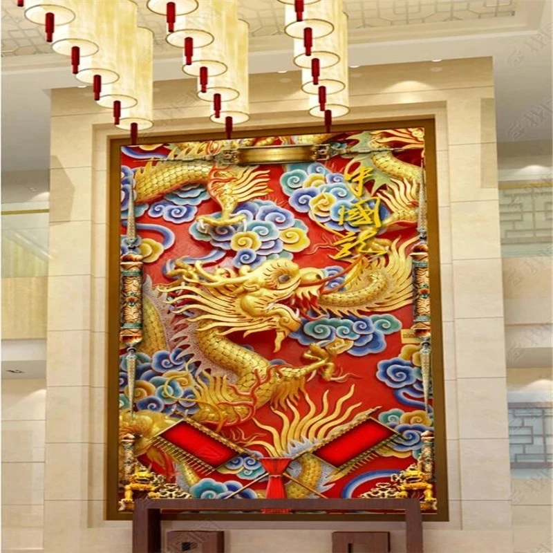 Роскошные китайские тисненые драконы, 3D фото, самоклеящиеся обои для отеля, гостиной, крыльца, промышленный Декор, роспись, домашний декор