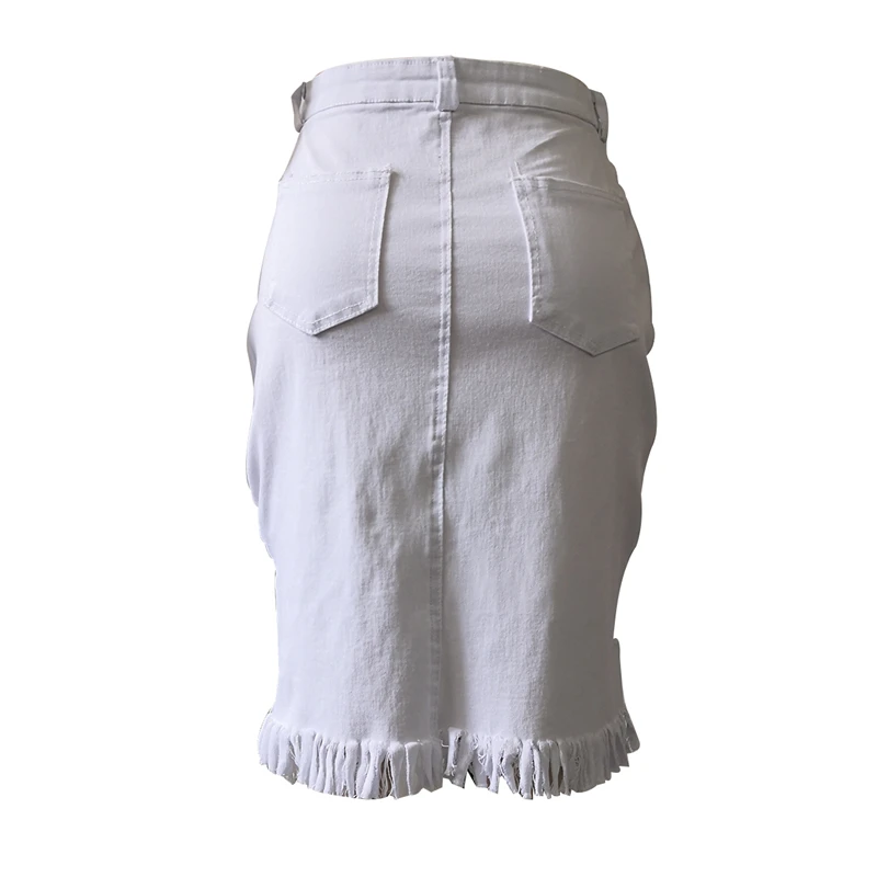 Хит продаж, летние женские повседневные босоножки на высокой талией Короткая мини-юбка на пуговицах короткая юбка черный, белый цвет красный сексуальный Высокий разрез нерегулярные джинсовая юбка с бахромой