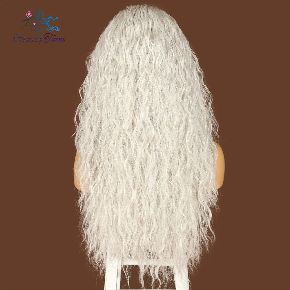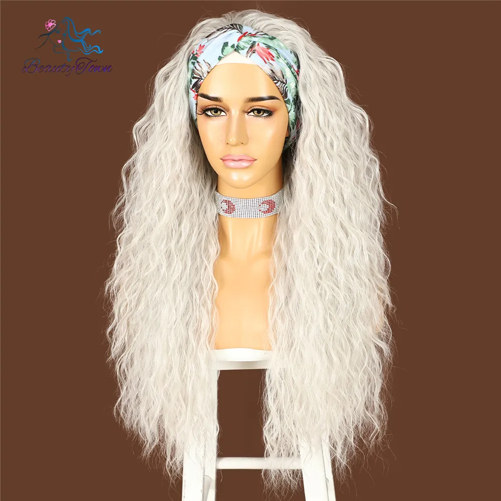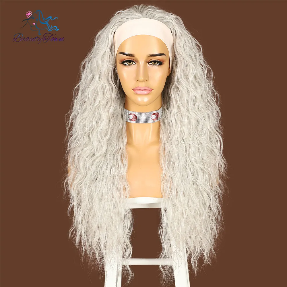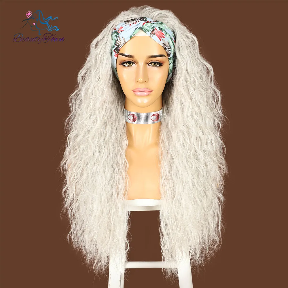 BeautyTown парик с головной повязкой для Для женщин длинные вьющийся кудрявые волосы, белаясерая парики ежедневные вечерние, для путешествий, для отпуска, не гель волосы для наращивания без клея 2 повязки без
