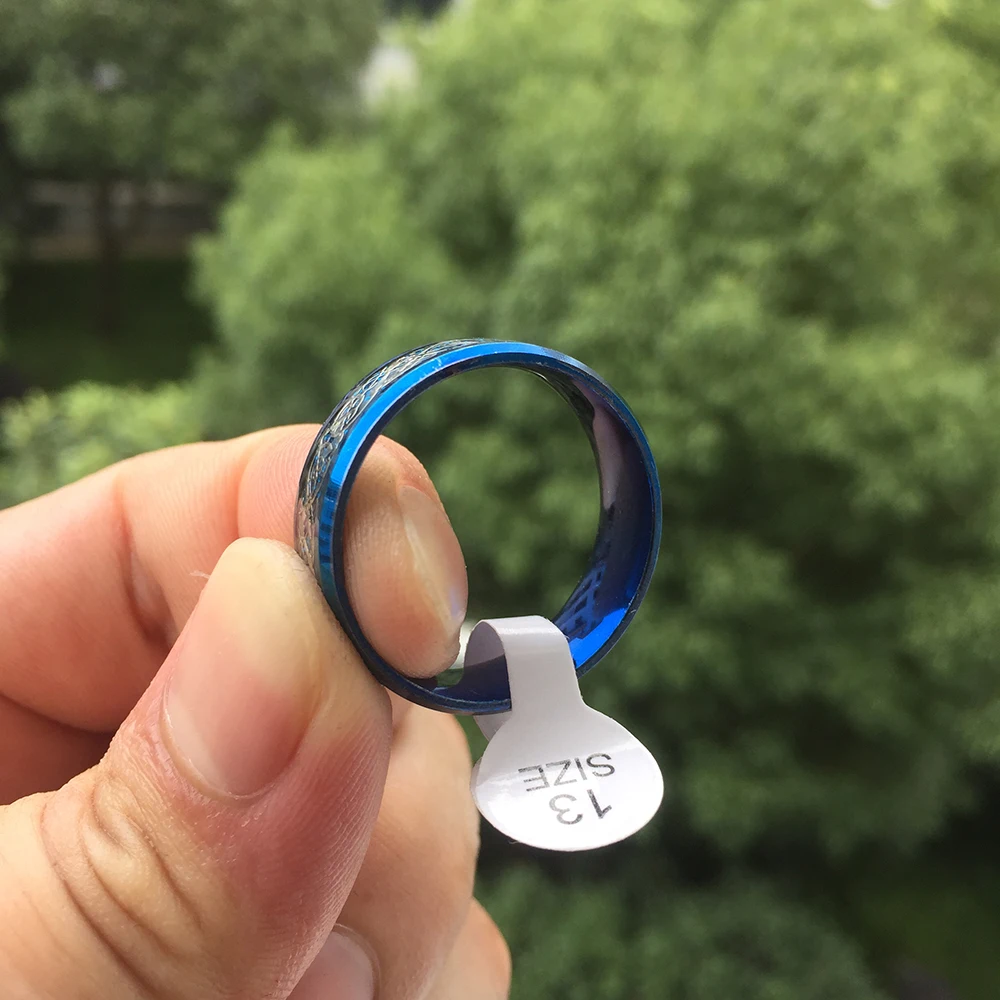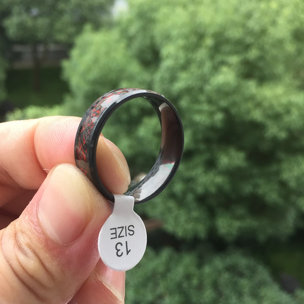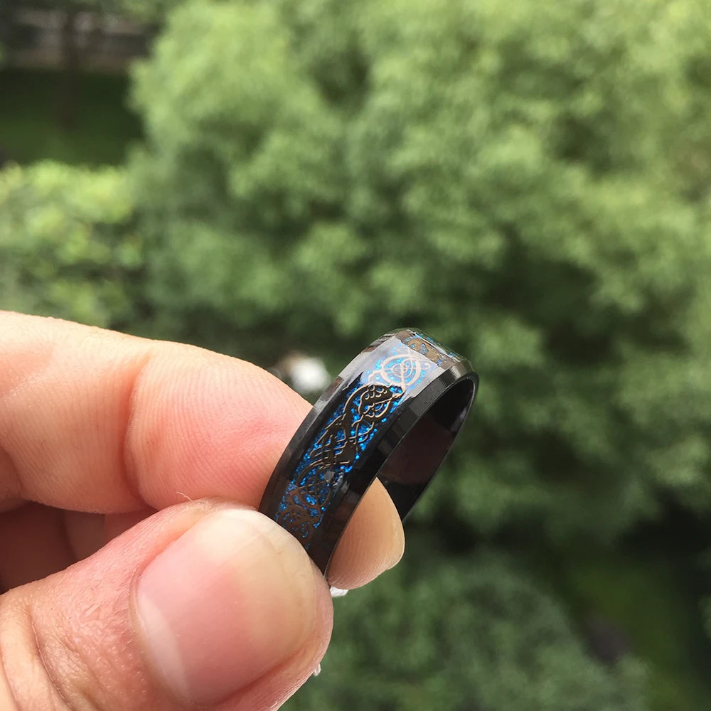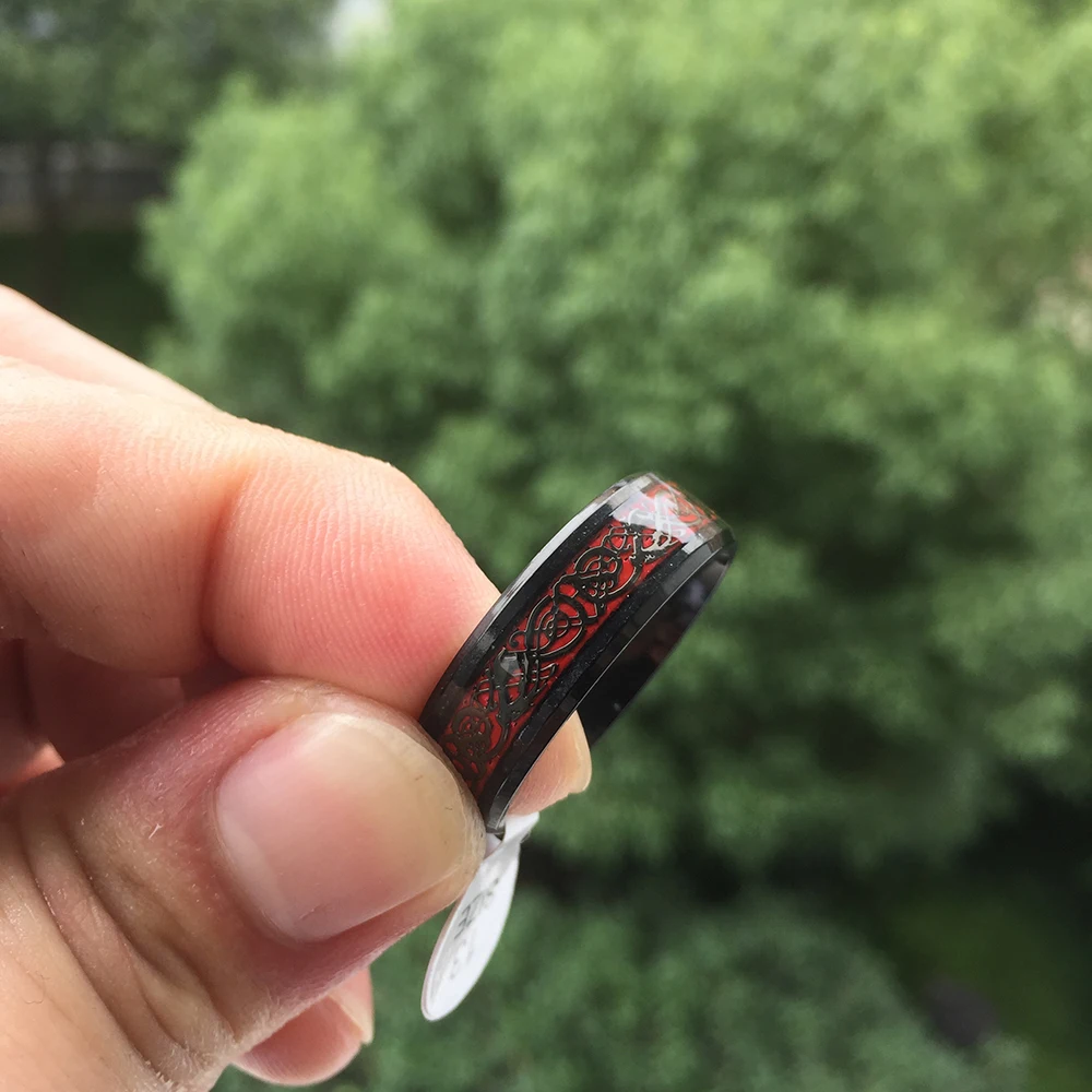 Мужское кольцо из углеродного волокна, черное кольцо 8 мм из нержавеющей стали со скошенными краями и красным кельтским драконом, обручальное кольцо