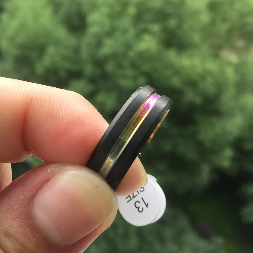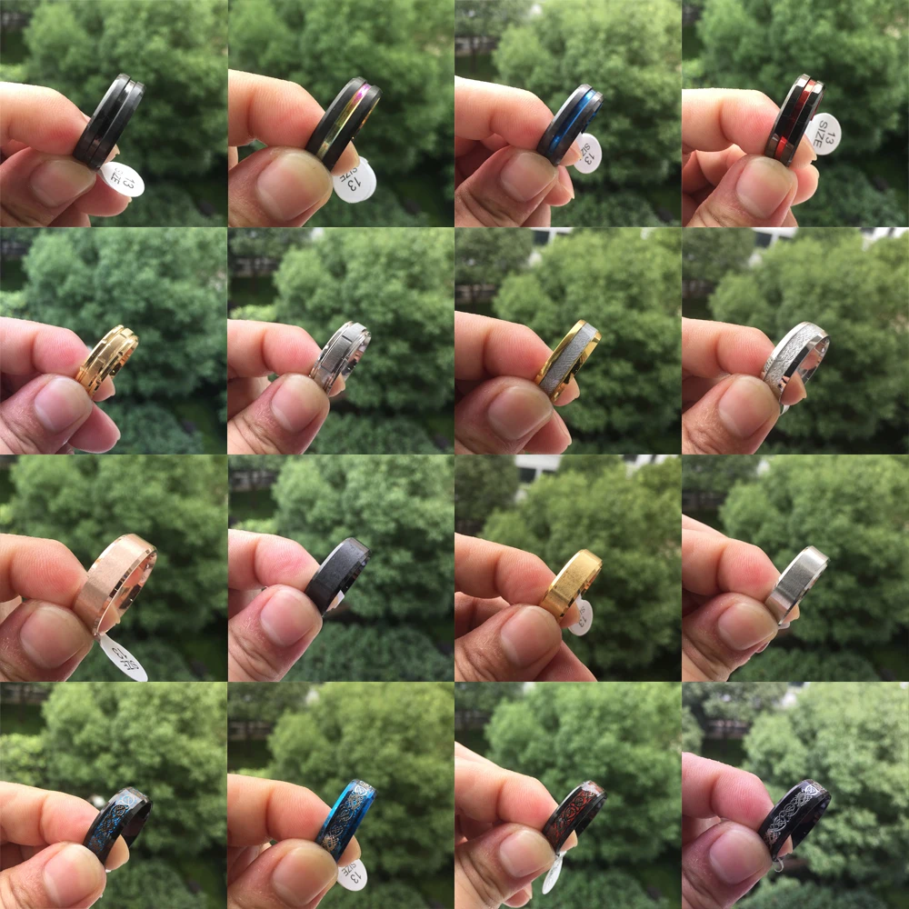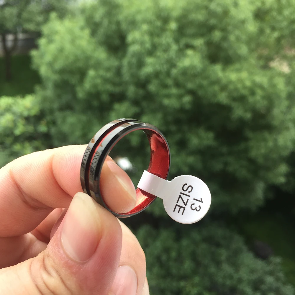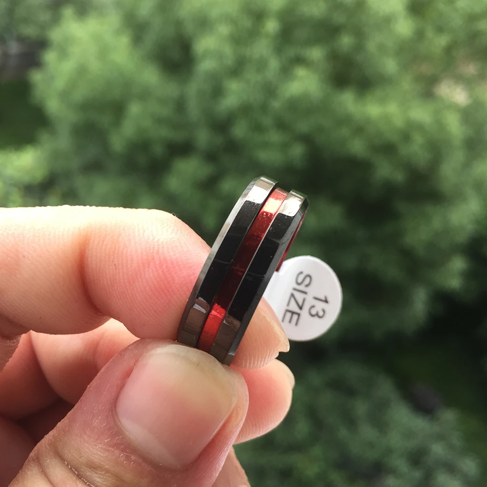 Мужское кольцо из углеродного волокна, черное кольцо 8 мм из нержавеющей стали со скошенными краями и красным кельтским драконом, обручальное кольцо
