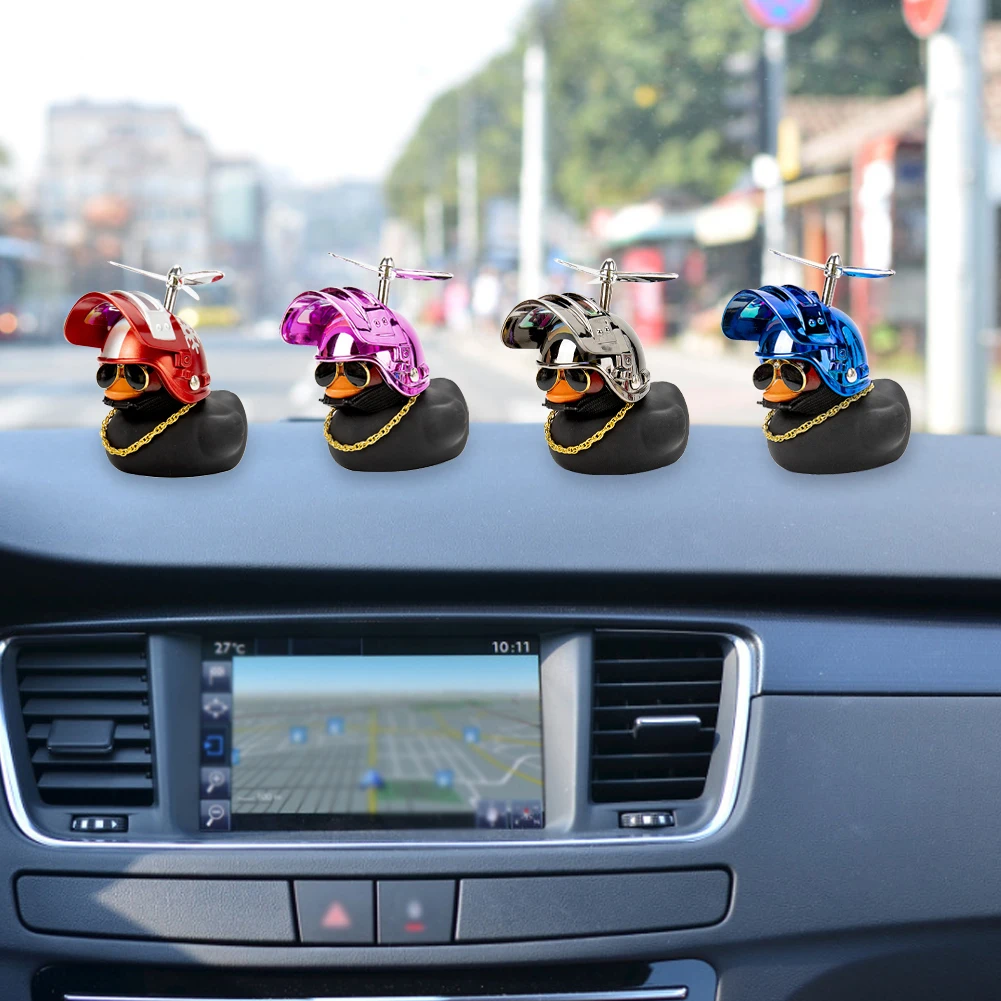 Новый автомобильный орнамент приборной панели зеркало заднего вида стоящая черная сломанная утка с камуфляжным шлемом маленький с серебряным воздушным винтом