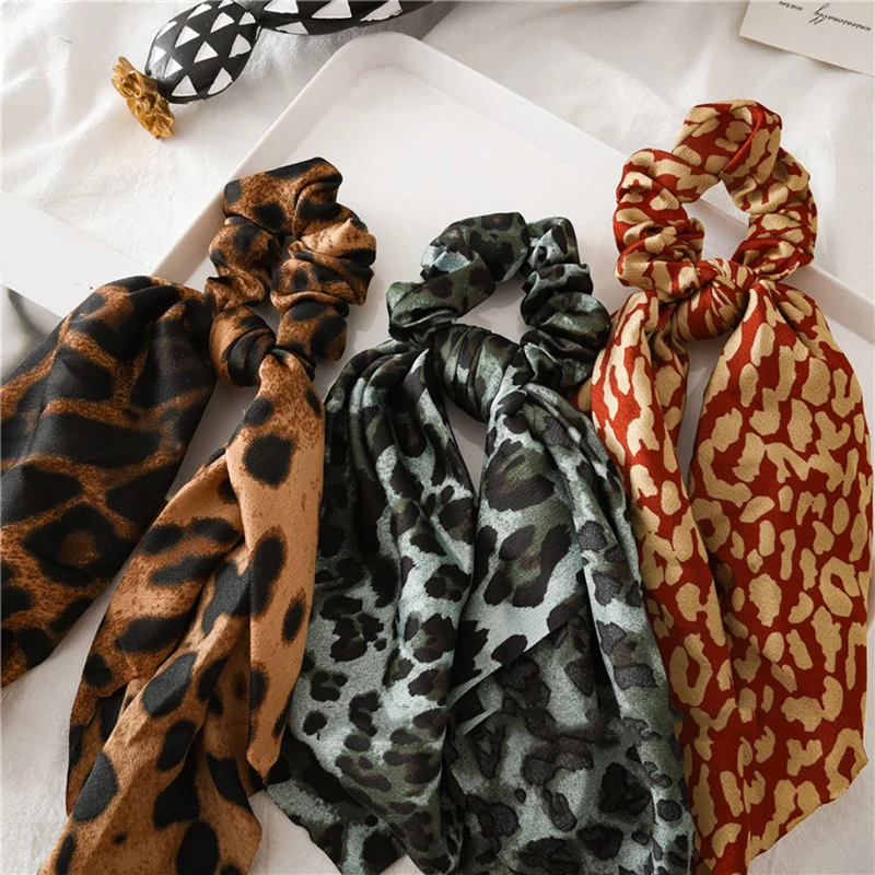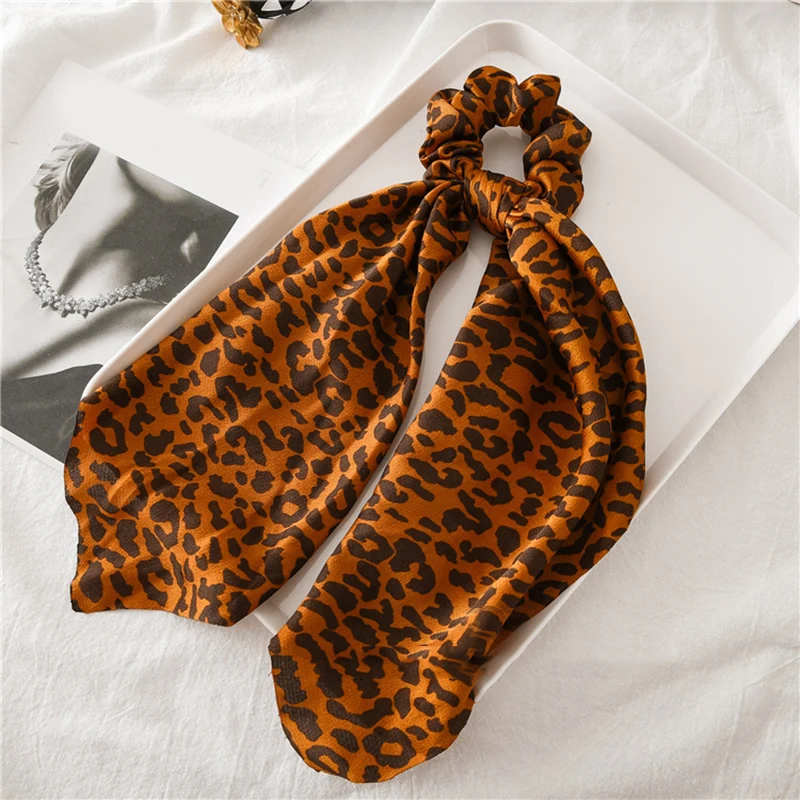 Бесплатная доставка, новый комплект в Корейском стиле с леопардовым принтом в горошек Scrunchies повязка на голову для Для женщин волос шарф ретро завязанный резинка для хвоста, с бантом, женские аксессуары для волос