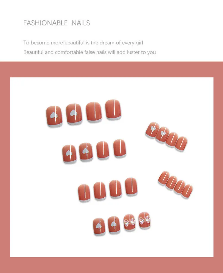 24 шт ногти патч клей Тип с бабочкой с принтом любящее сердце пункт модного маникюра, маникюрный набор накладных ногтей "Экономия времени