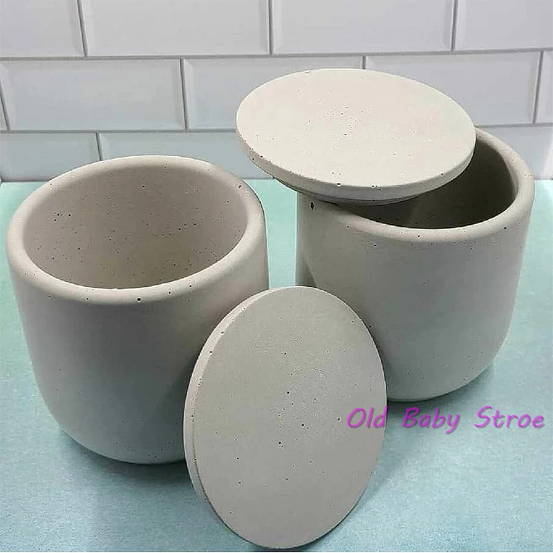 Силиконовая форма для бетона, круглый контейнер для свечей, банка, форма с крышкой, бетонная глина, пластырь для ручек, форма