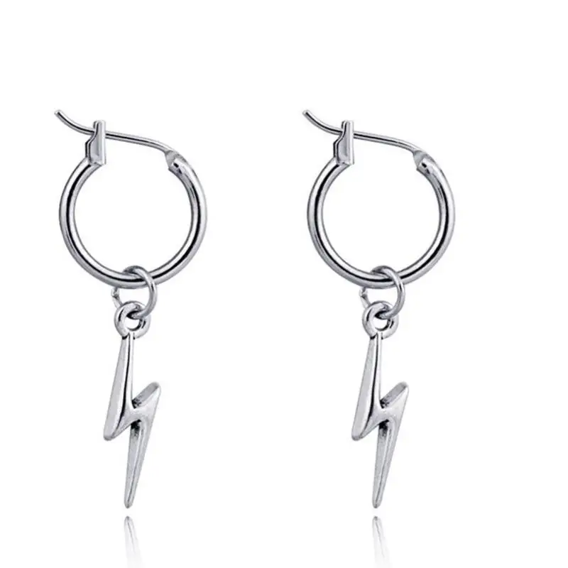 1 пара, серьги-кольца из нержавеющей стали со звездами и перьями для мужчинженщин, серьги-подвески в виде треугольника, металлические ювелирные изделия в стиле панк, готика