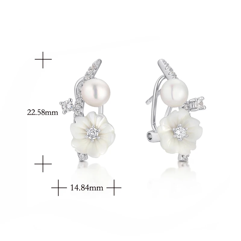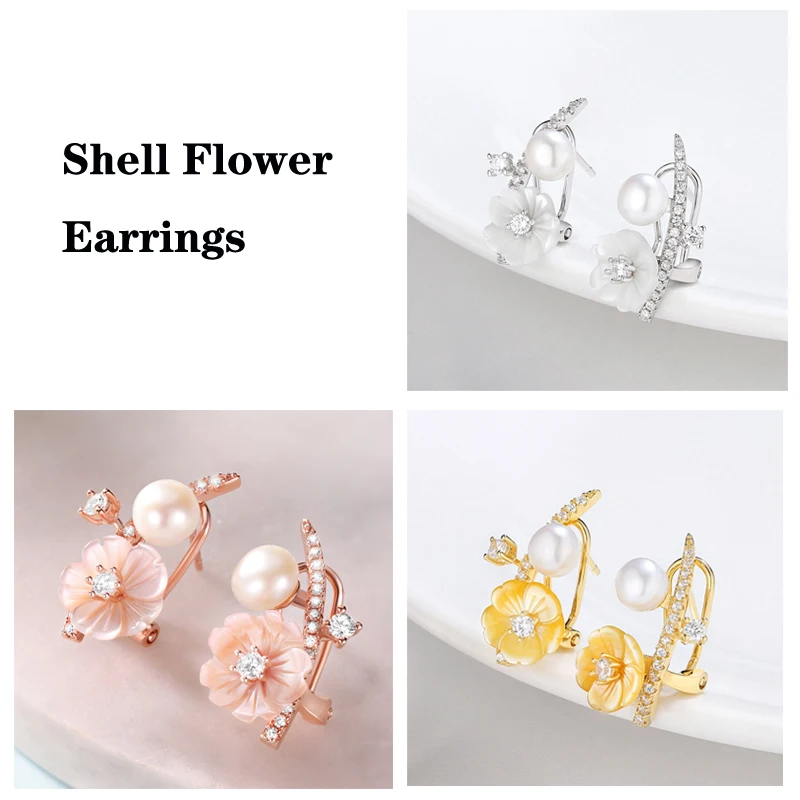 LAYA Shell Жемчужные Серьги Для женщин Из Чистого Стерлингового Сер...