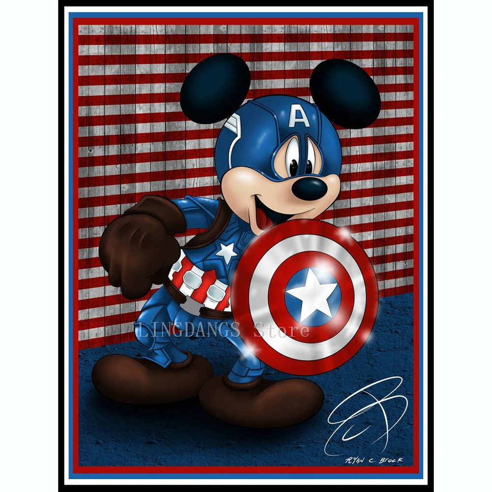 Алмазная мозаика 5D "сделай сам", Дисней, Микки, Америка, капитан, забавная, Дональд Дак, Марвел, вышивка крестом, домашний декор