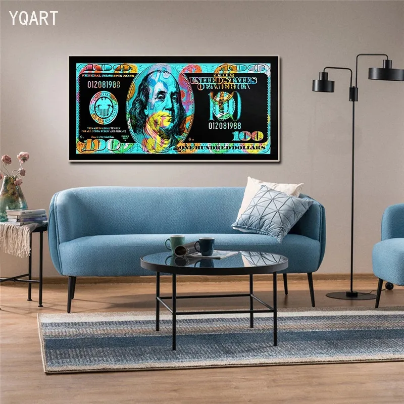 Красочная картина в долларах сто денег, холст, картины, Абстрактные Художественные постеры для современного дома, гостиной, Настенный декор