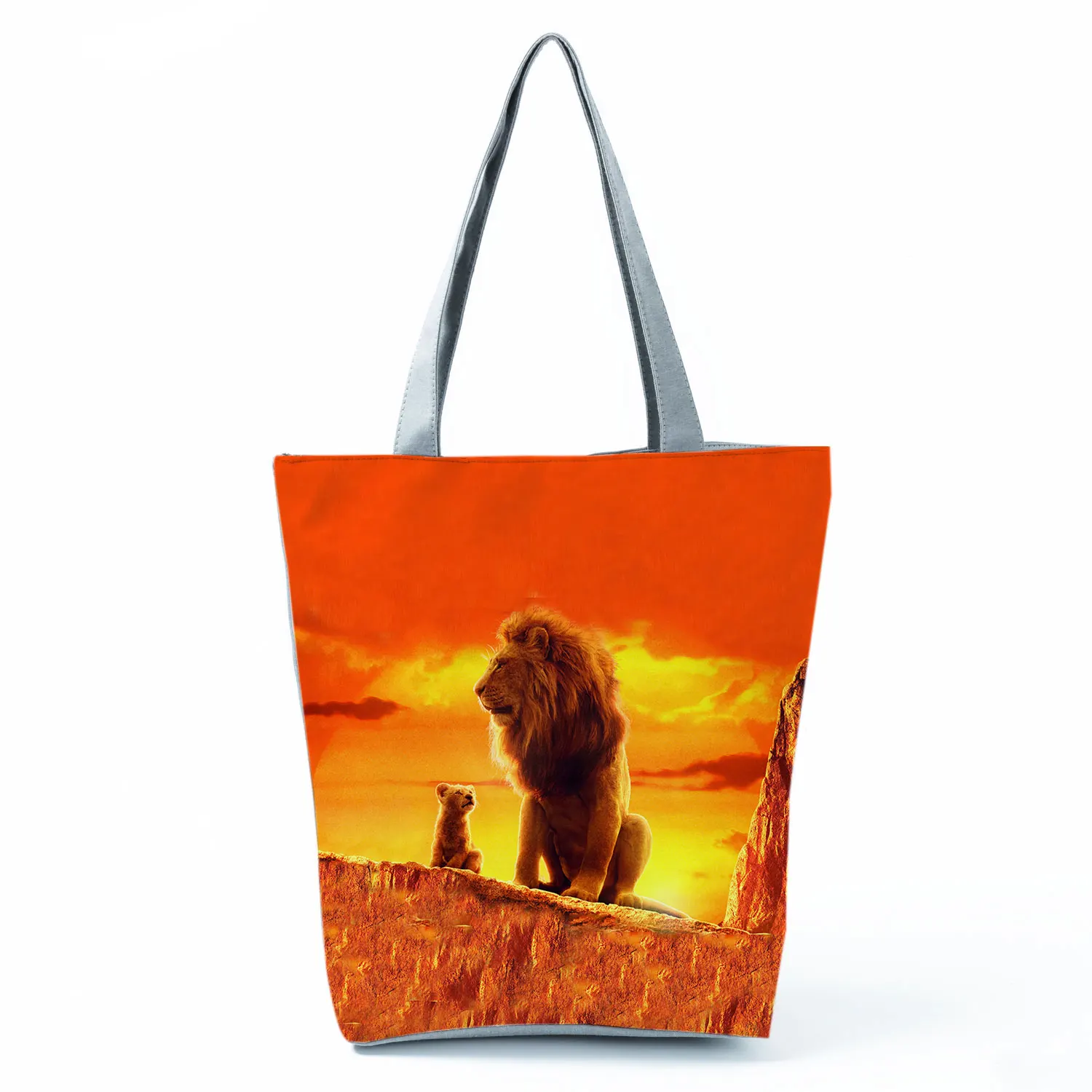 Сумка с принтом Король Лев Disney, Оранжевая женская наплечная Сумочка с животными, вместительная Экологически чистая многоразовая сумка для покупок, яркая пляжная сумка