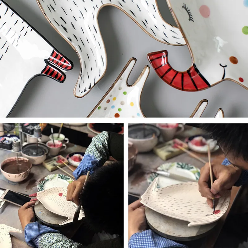 Керамическая тарелка, набор детской посуды для завтрака, Мультяшные животные, десерты, фрукты, закуски, кухня, детское просвещение
