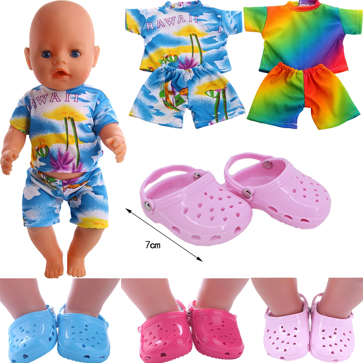 Летние кукольный комплект одежды + 7 см обувь с отверстиями; Обувь подходит 18 дюймов с капюшонами в американском и 43 см для ухода за ребенком для мам Reborn Baby Новый кукла-младенец, девушки России куклы сделай себе сам Подарки Игрушка
