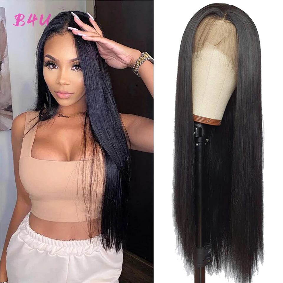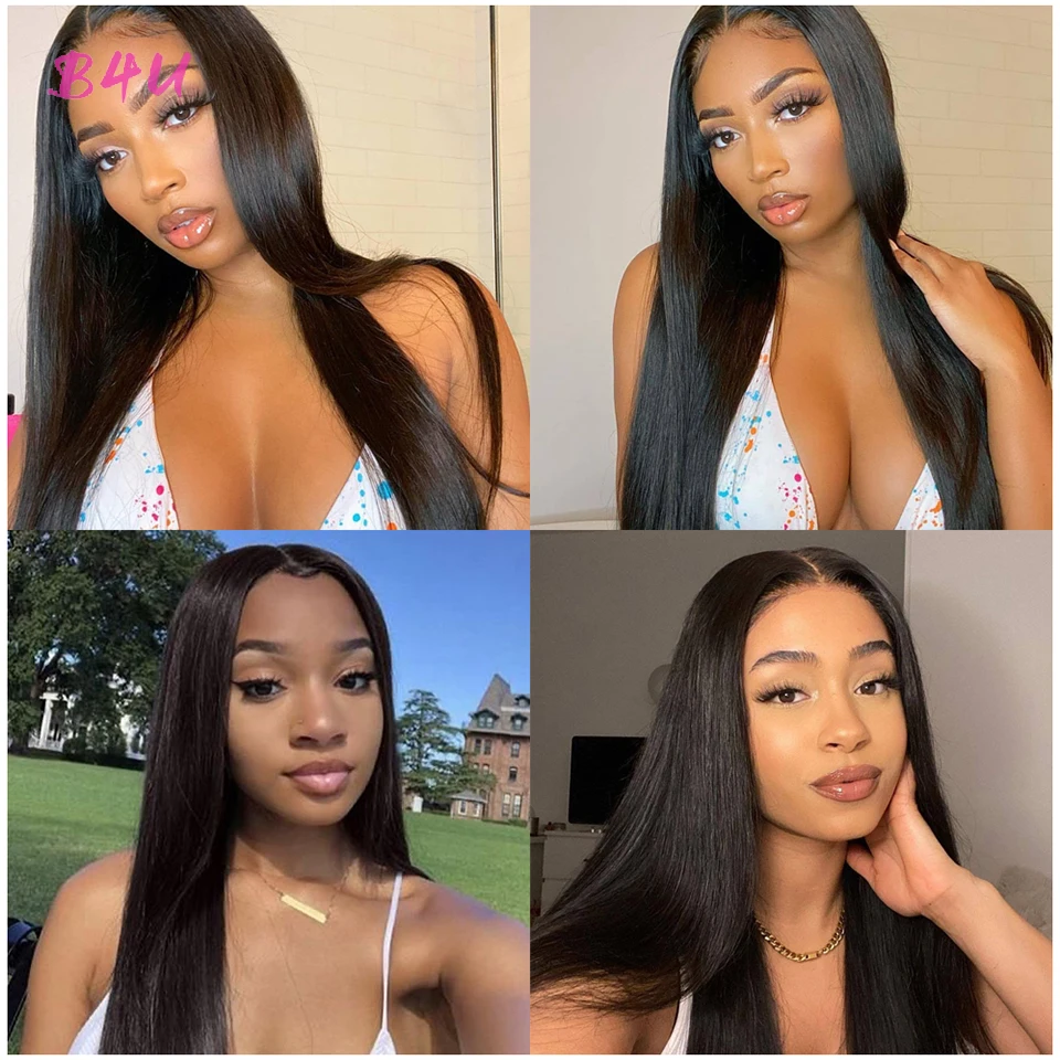 B4U прямые волосы на кружеве, парик из натуральных волос 13X4, прозрачные кружевные передние парики, бразильские прямые парики на шнуровке