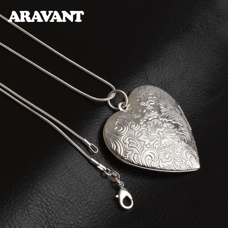 Серебро 925 пробы, винтажная фоторамка с сердцем, 182024 дюйма, ожерелья для женщин, модные ювелирные изделия
