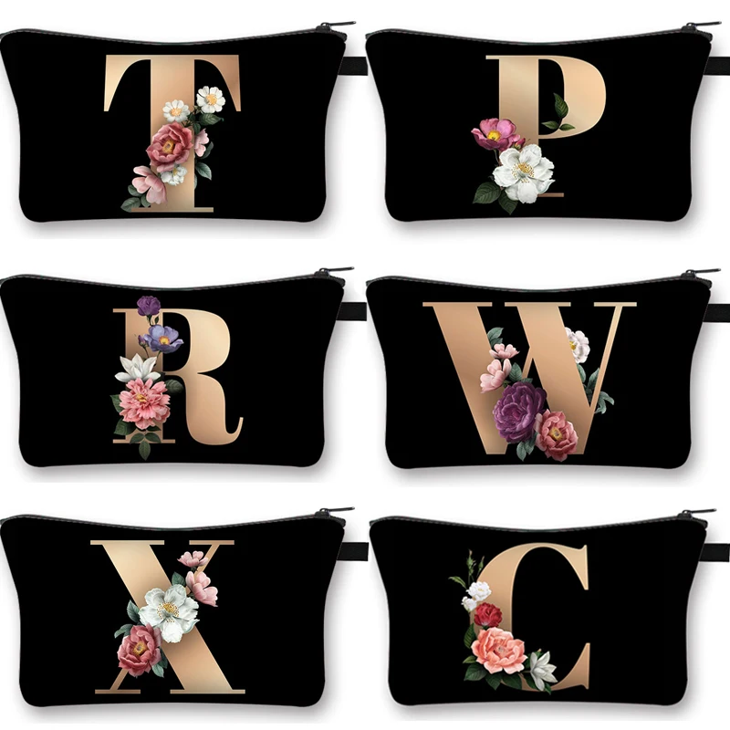 Косметичка с 26 инициалами и цветами, A-Z, косметичка с буквами, Женская дорожная сумка для подружки невесты, Женская Портативная сумка для невествечерние, подарок