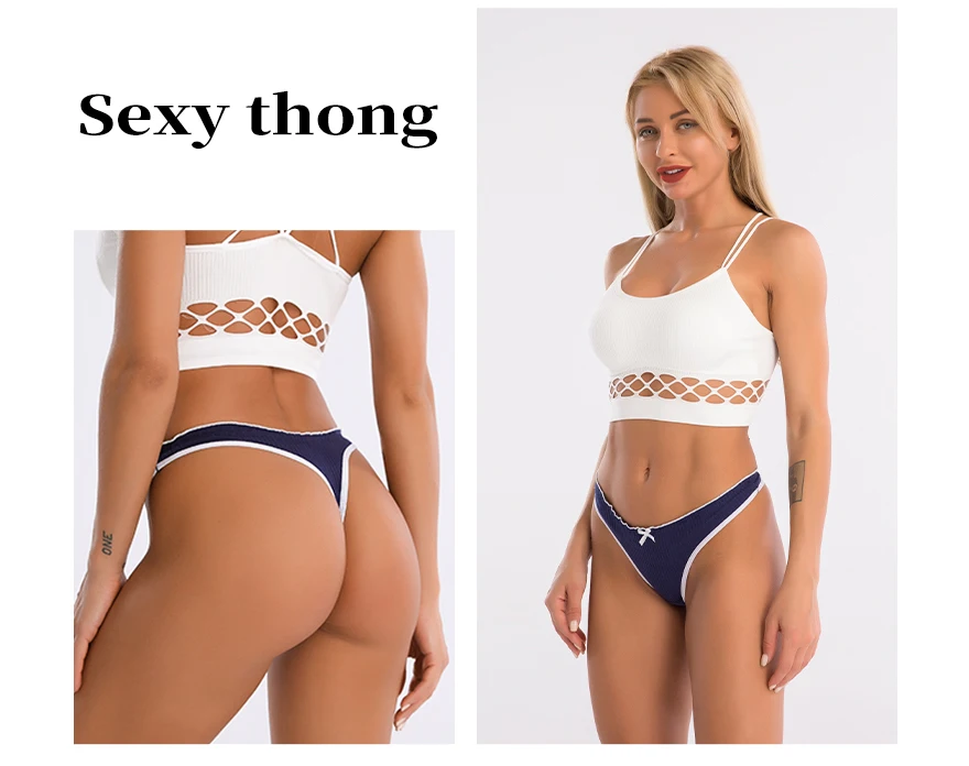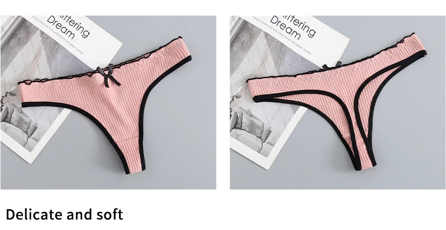 3 шт.лот женские хлопковые стринги с низкой посадкой сексуальные стринги однотонные трусики Нижнее белье Женские трусы с бантом интимное женское белье