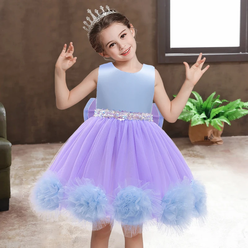 Платье принцессы для девочек, костюм на Хэллоуин, одежда для дня рождения для детей, детское платье, платье для девочки, платье с блестками и бантом для девочек