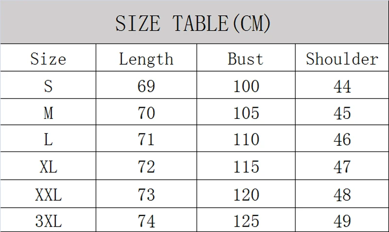 1. Пожалуйста, строго следуйте таблице размеров, чтобы выбрать размер. Не выбирайте напрямую в соответствии с Вашими пожеланиями.