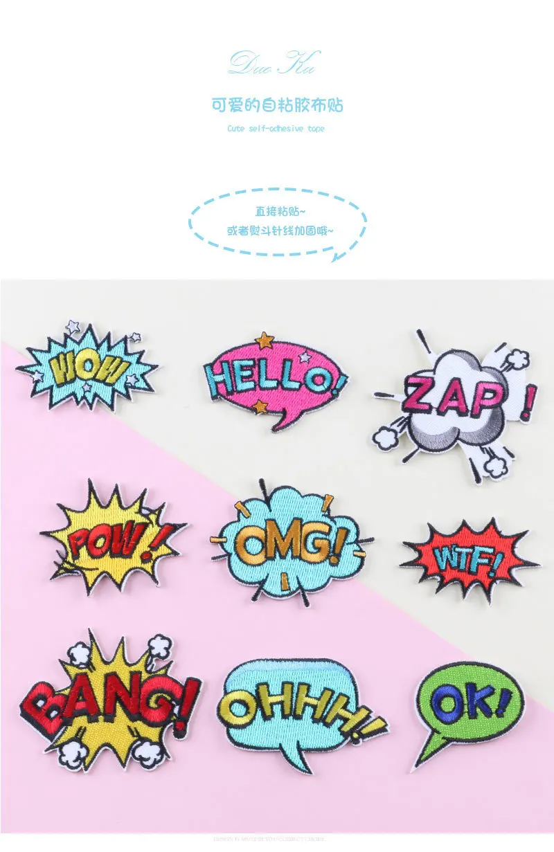 Самоклеящиеся нашивки со слоганом WOW OMG BANG с вышивкой, нашивки ...