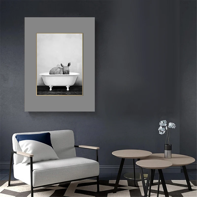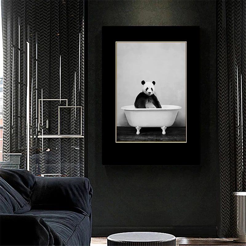 Картина в скандинавском стиле, черно-белая панда, стирка животных в ванной комнате, настенные картины для гостиной, ванной комнаты