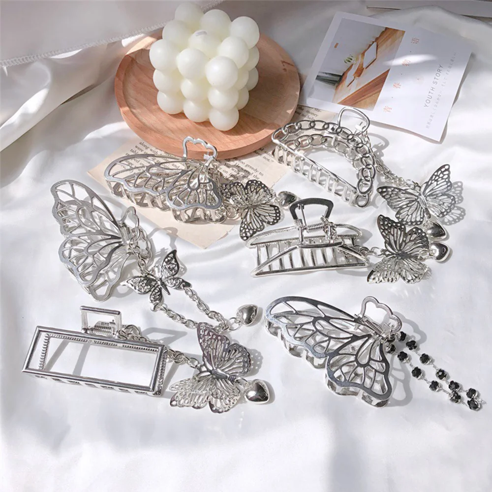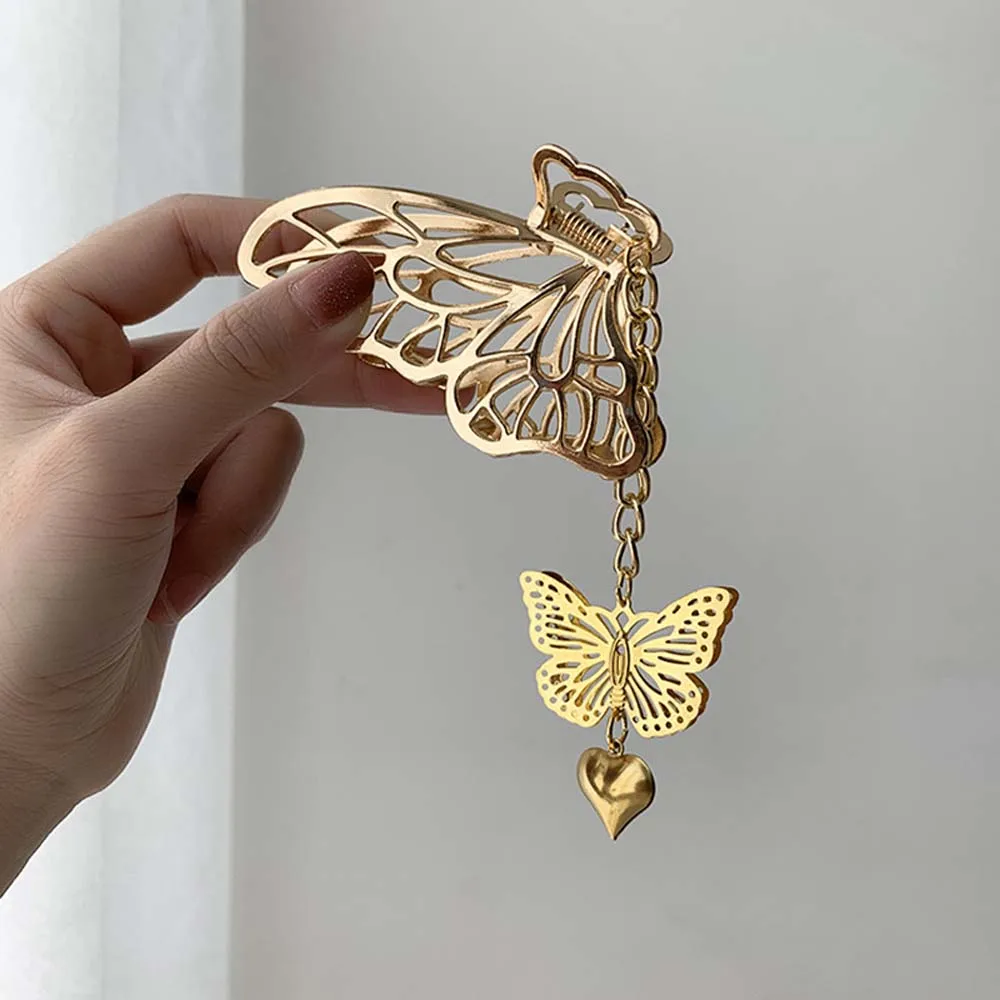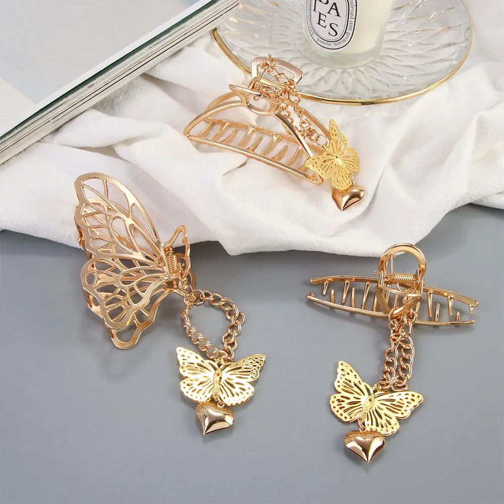 Женская Винтажная заколка-краб, золотистая длинная металлическая заколка-краб с бабочкой, аксессуар для вечерние, 2021