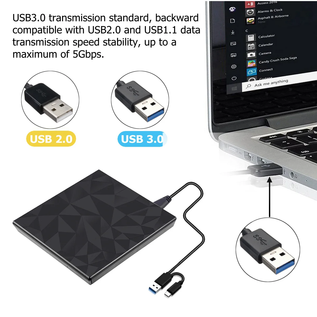 Новый USB 3,0 Тип C dvd-привод компакт-диск драйвер горелки высокой скорости чтения и записи Регистраторы внешний DVD-RW плеер писатель для WIN7810