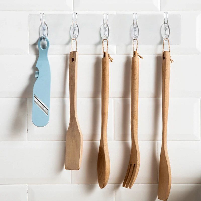 Ванная комната для крепления на крюк в стену прямой ряд, Не оставляющий следов надежный дизайн крючки настенная вешалка-наклейка прозрачный Пластик клей, крючки, станок и Кухня шесть ряды крючков