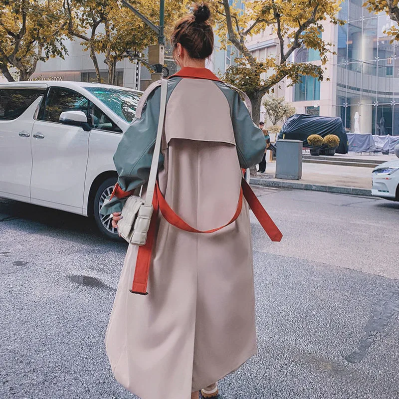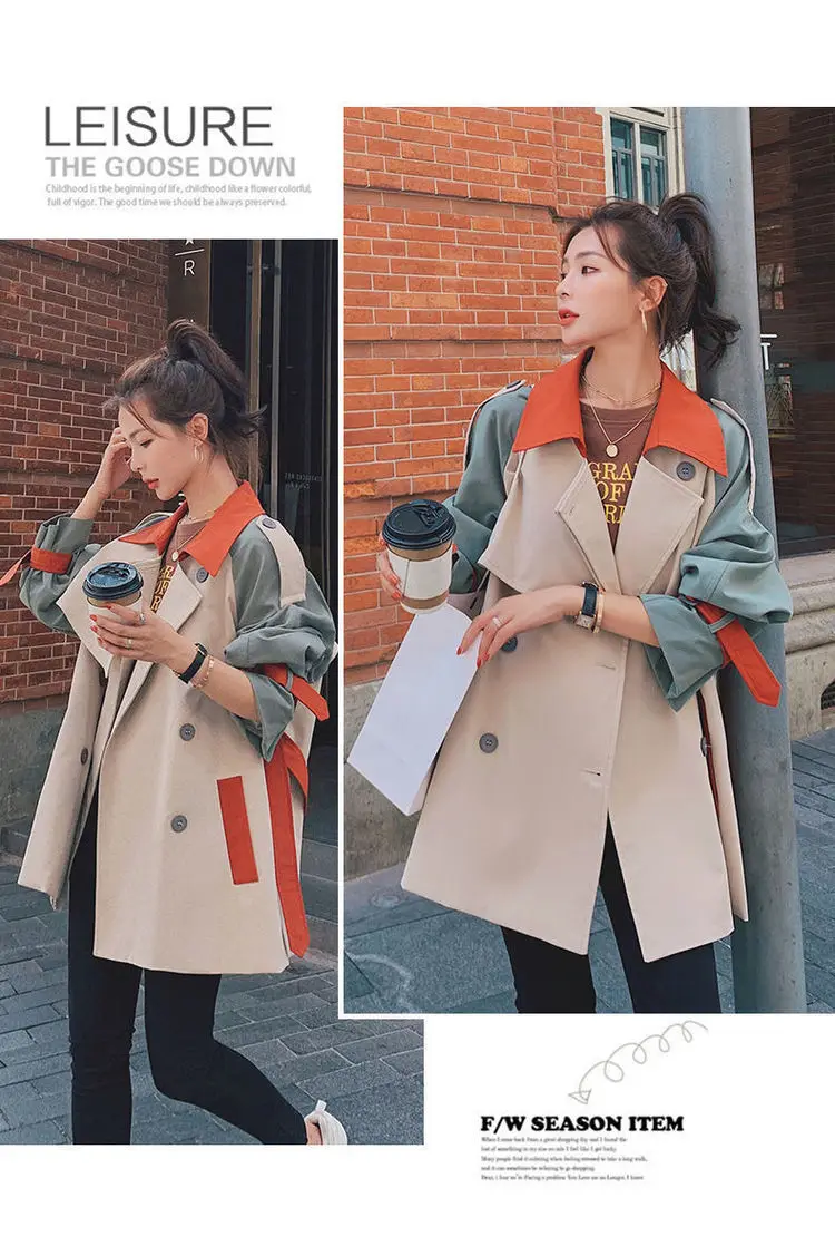 Ветровка с контрастной строчкой женская одежда средней длины весна-осень 2021 Корейская версия Свободный ремень
