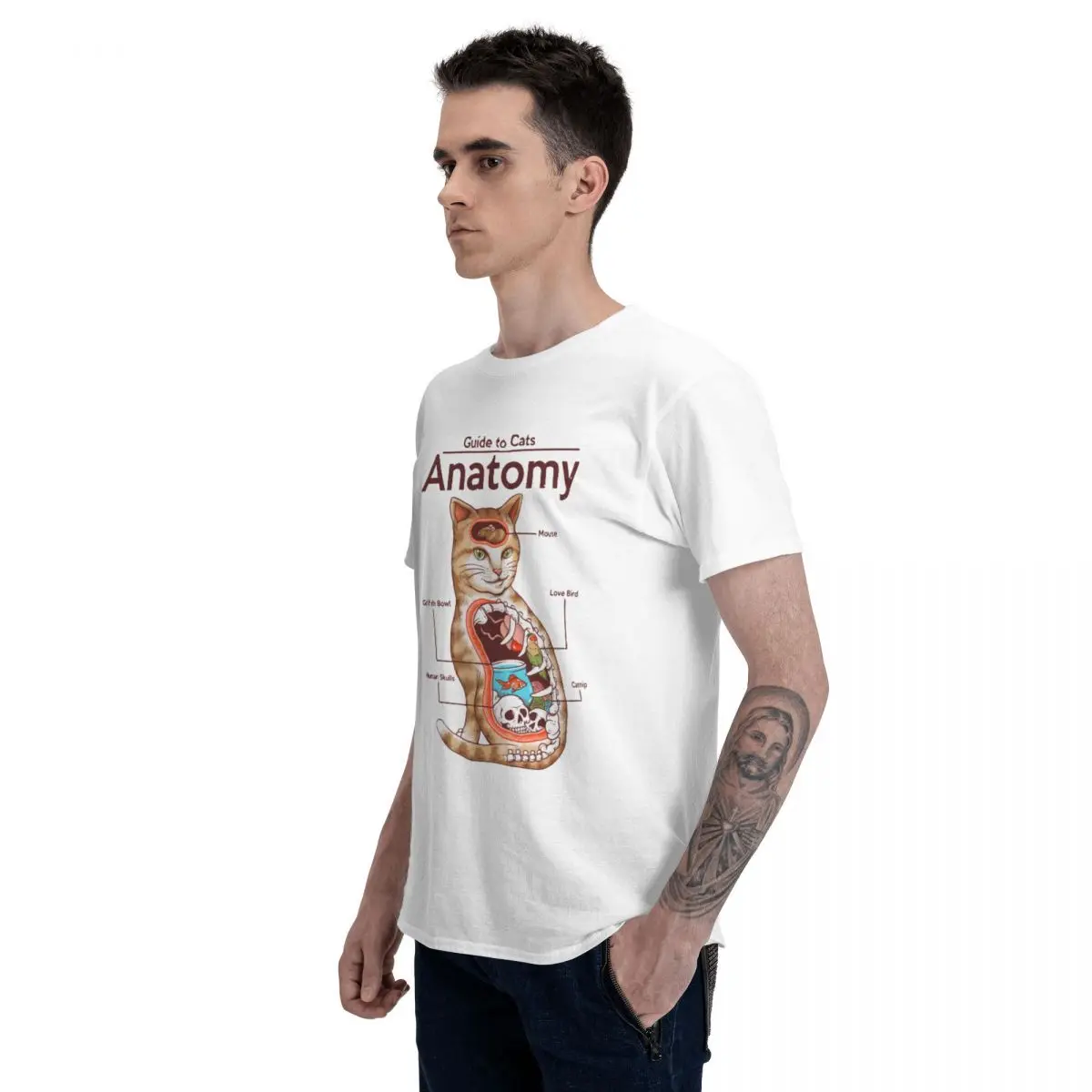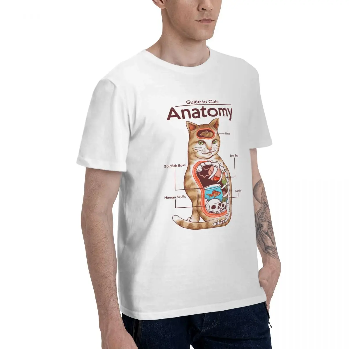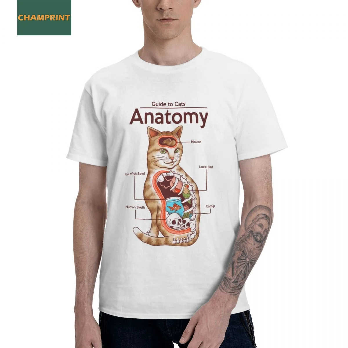 Мужская футболка Анатомия Кошатница Новинка хлопковая футболка футболки с коротким рукавом и круглым вырезом, одежда размера плюс
