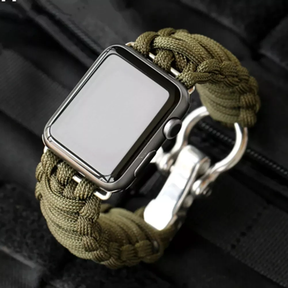 Ремешок нейлоновый Paracord 550 для Apple watch band 44 мм 40 мм iWatch 42 мм 38 мм, богемный браслет ручной работы с военными правилами