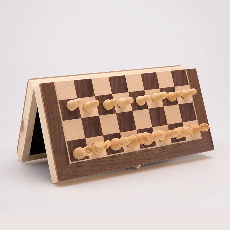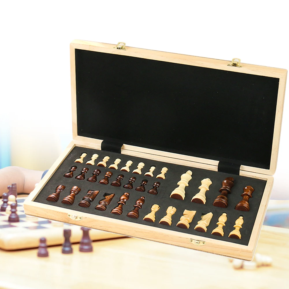 Большой деревянный Шахматный набор, Складная магнитная доска с 32 шахматными элементами, внутреннее хранилище, портативная дорожная настольная игра для детей, начинающих