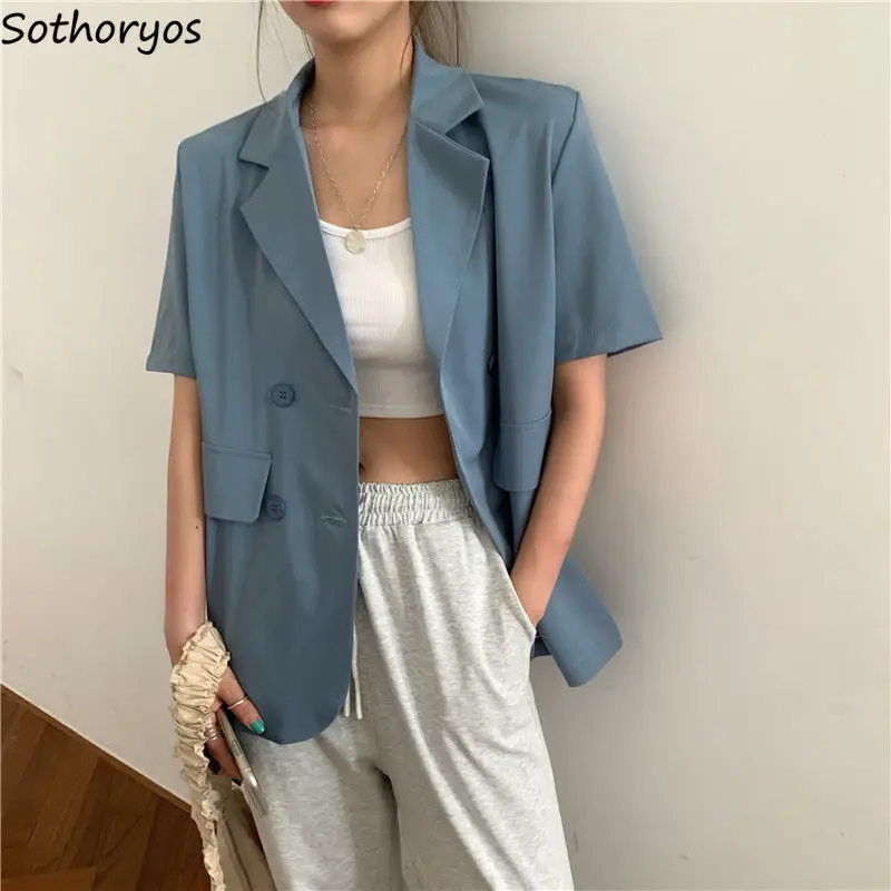 Пиджаки для женщин для Твердые Chic Y2K Harajuku размера плюс S-3XL Хай-стрит уютный Весна рубашка с короткими рукавами Женский блейзер в Корейском стиле Модные солнцезащитные очки в стиле ретро