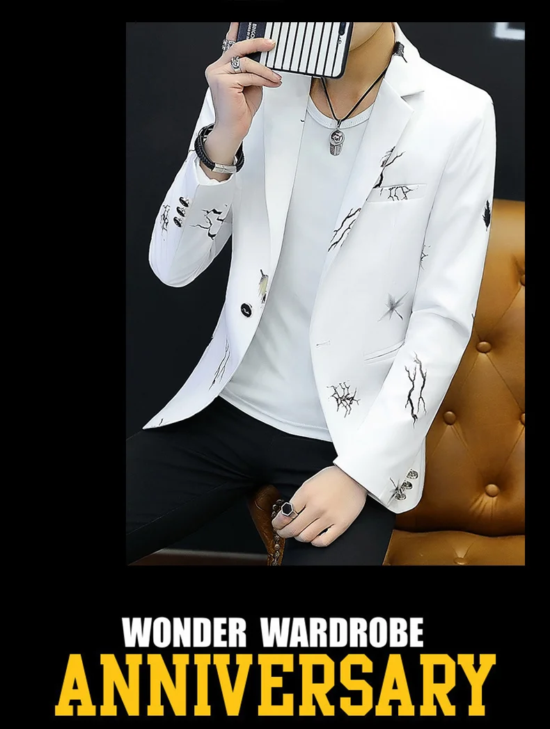 Мужские костюмы, приталенные куртки в Корейском стиле, Молодежные повседневные весенне-осенние маленькие костюмы, мужской блейзер с принтом в стиле ретро, брендовая одежда