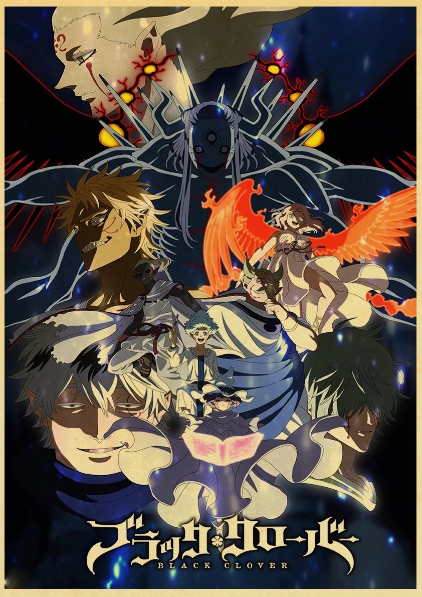 Плакат с черным клевером, японские аниме плакаты, Настенный декор, принты из крафт-бумаги, домашняя комната, настенные наклейки, художественная живопись