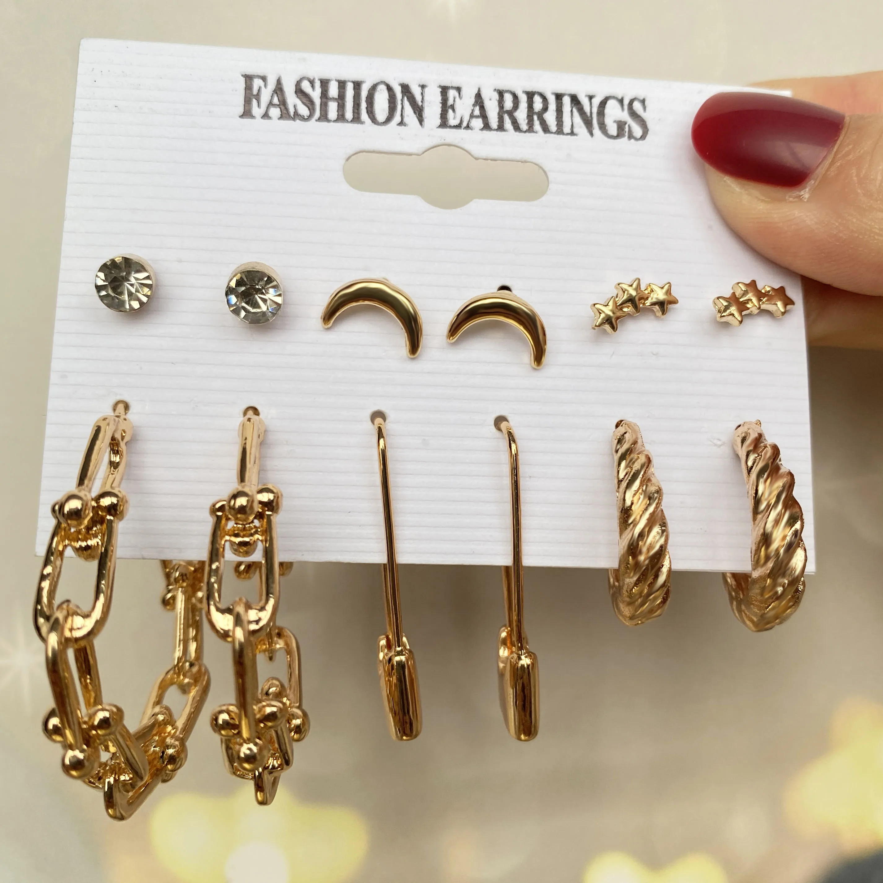 Модные золотистые простые серьги-кольца 6 Парыкомпл. для девушек ме...
