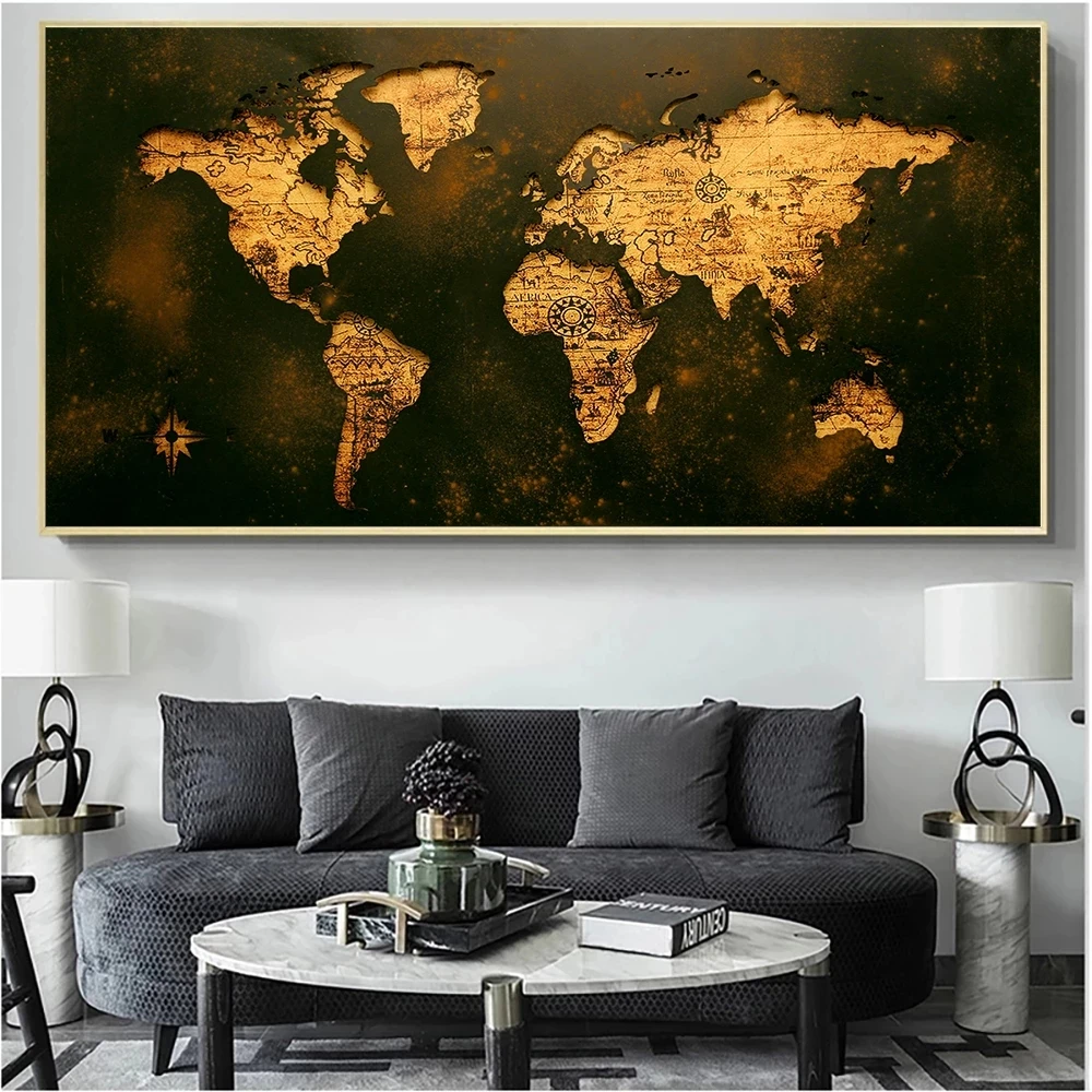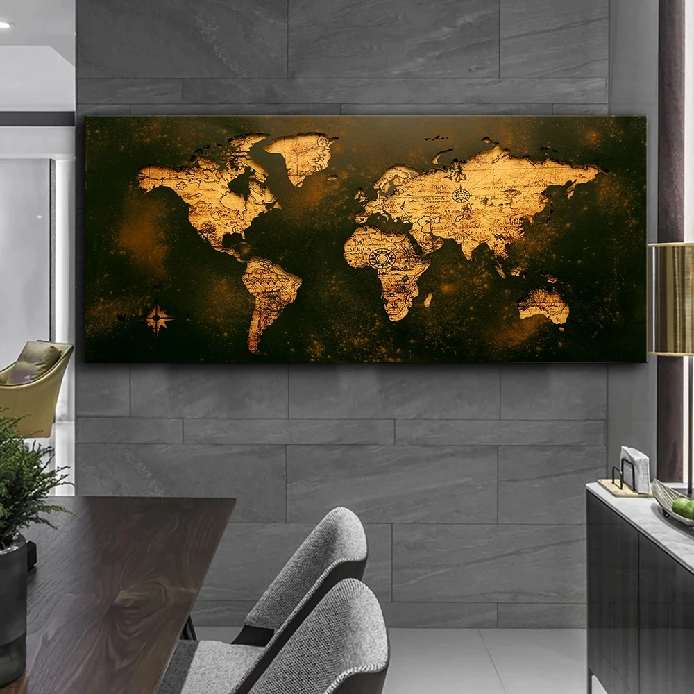 Картина с картой фильма, винтажный стиль, средняя земля, холст, пос...