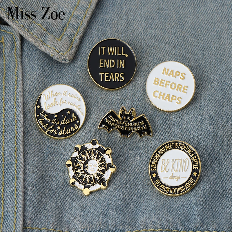 Темный панк баннер эмалевые булавки На Заказ Солнце ведьмахство круги летучая мышь тайчи брошь на лацкан значки сумка Ювелирные изделия подарок для детей друзей