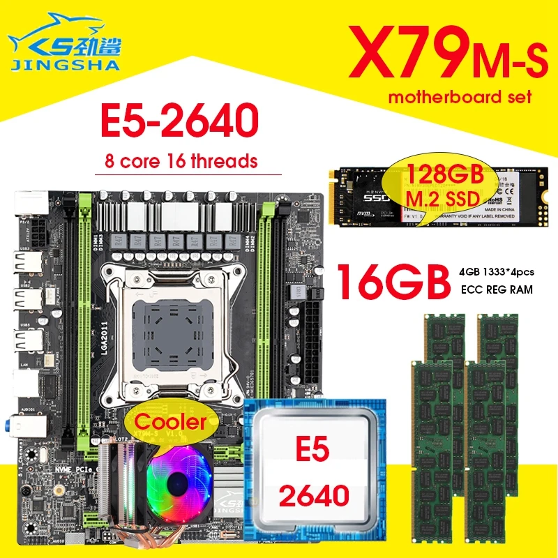 Материнская плата X79 LGA2011 E5 2640 CPU 4 шт. x 4 ГБ = 16 Гб DDR3 1333 МГц 10600 память ECC REG набор 128 ГБ M.2 SSD с комбинированными охлаждениями