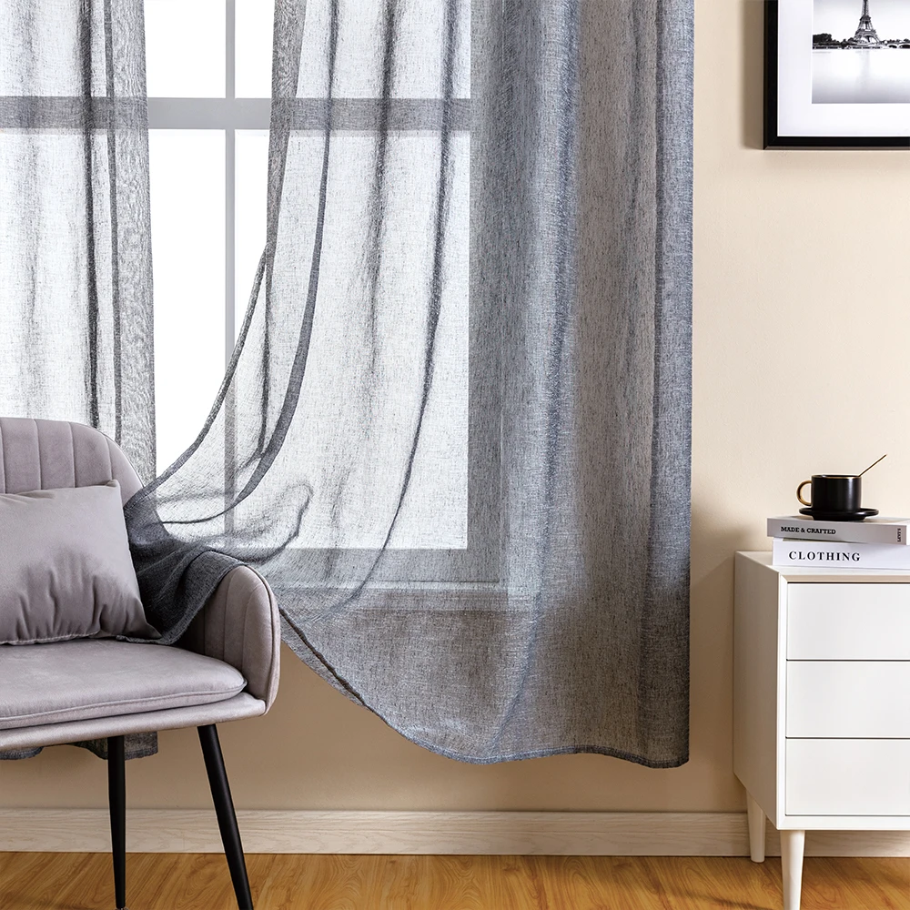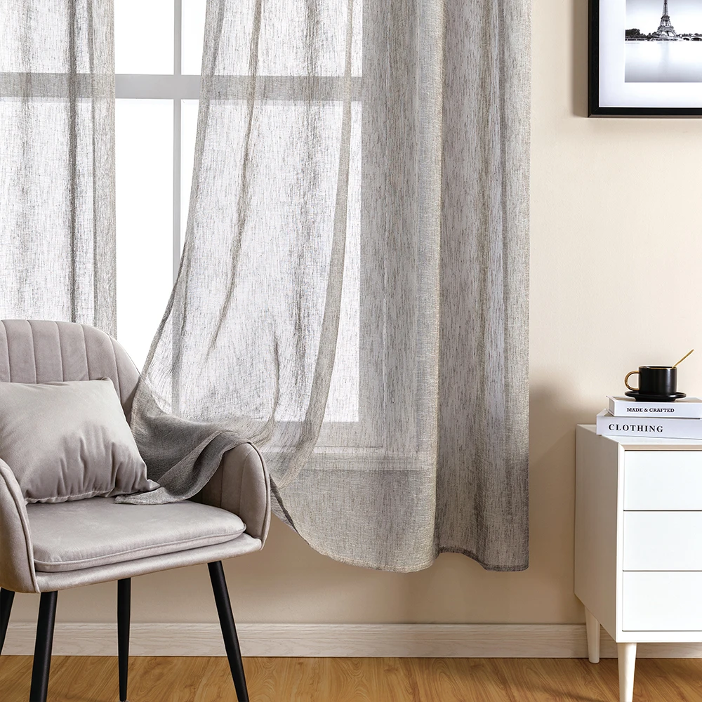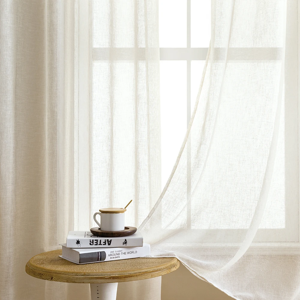 Льняные текстурированные Короткие Прозрачные шторы TPS, 2 шт., для гостиной, спальни, кухни, обработка окон, маленькие шторы, тюлевые занавески